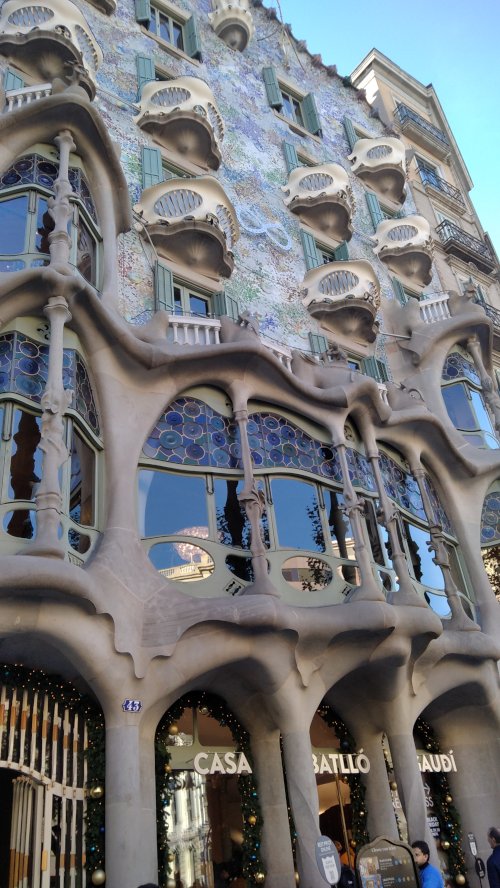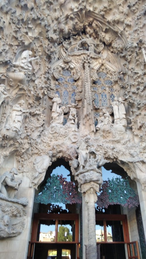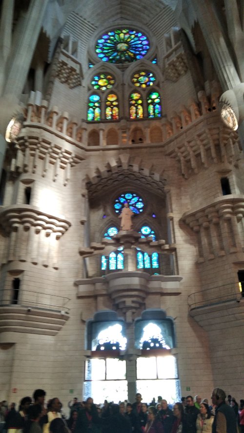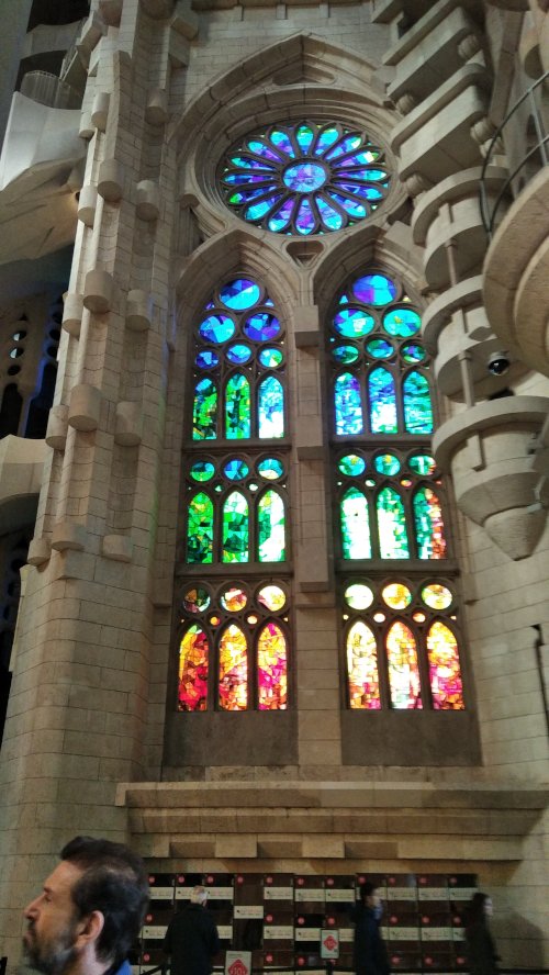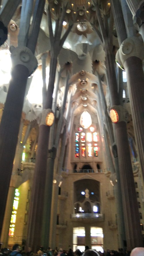 Στη συνέχεια κατευθυνθήκαμε για να επισκεφτούμε εσωτερικά και εξωτερικά το πασίγνωστο έργο του, τη Σαγράδα Φαμίλια (Sagrada Familia), η οποία ξεκίνησε να χτίζεται το 1882 και αναμένεται να ολοκληρωθεί το 2035. Ήταν από τους πιο επιβλητικούς ναούς που έχουμε δει και δεν είναι τυχαίο που όταν ολοκληρωθεί θα είναι ο ψηλότερος ναός στον κόσμο. Εντύπωση μας έκανε η αυστηρότητα που υπήρχε για την είσοδο στο ναό αλλά αποζημιωθήκαμε από την απαράμιλλη ομορφιά των υπέροχων χρωματιστών βιτρό καθώς και με το υπόλοιπο εσωτερικό του ναού.