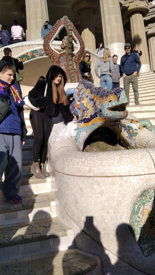 Η επόμενη ημέρα ήταν η πιο κουραστική αλλά και γεμάτη της εκδρομής καθώς είχε πολλές ώρες περιήγηση με τα πόδια. Αφού πήραμε πρωινό στο ξενοδοχείο μας ξεκινήσαμε για την περιήγησή μας που ήταν αφιερωμένη στον ξακουστό Αντόνιο Γκαουντί (Antoni Gaudi) με πρώτη στάση το διάσημο και πολύχρωμο Park Guell. Εκεί είχαμε ελεύθερο χρόνο να περιηγηθούμε στο πάρκο και να βγάλουμε υπέροχες φωτογραφίες στα ψηφιδωτά παγκάκια, στο δάσος με τις 80 κολόνες, στο συντριβάνι με τη σαλαμάνδρα καθώς και να ψωνίσουμε αναμνηστικά από το μουσείο.